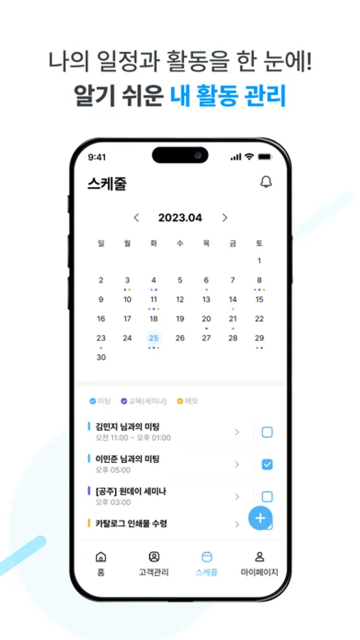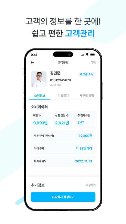 고객의 특징과 주요 만남, 거래내역과 재구매 알림까지!