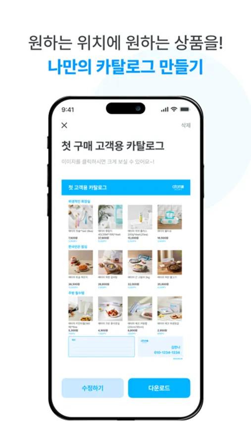 원하는 위치에 원하는 상품을 넣어 카탈로그를 만들어보세요!