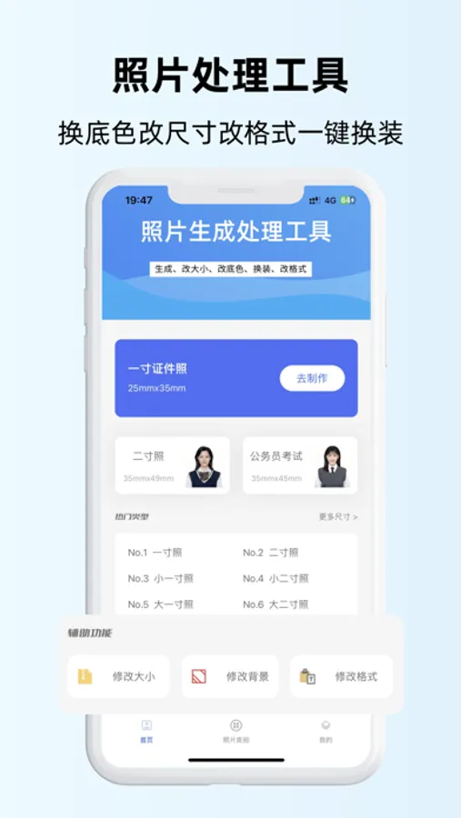 证件照规格丰富,适用于多种场景,照片处理工具拥有强大的功能