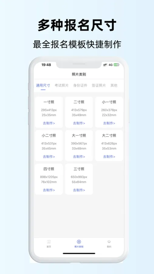 简历,毕业证,签证,护照,考试证,驾驶证,社保证,公务员证等,统一按标准尺寸设定