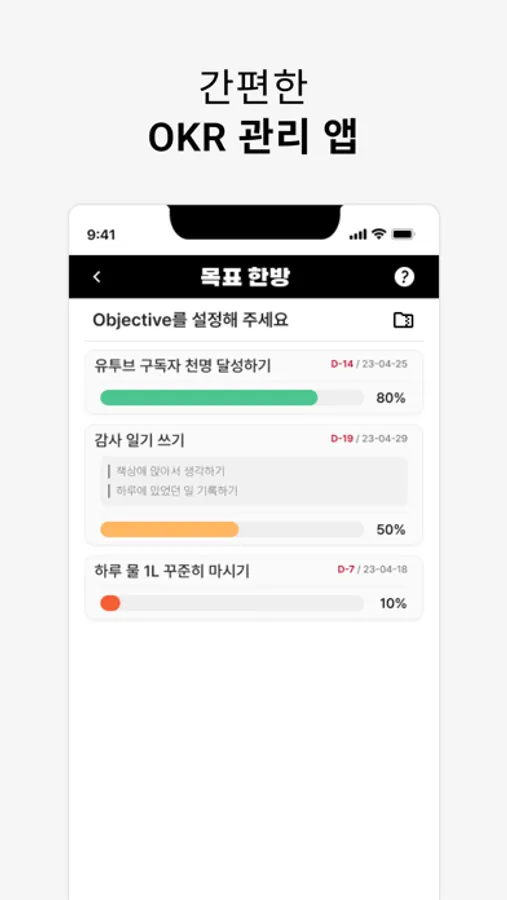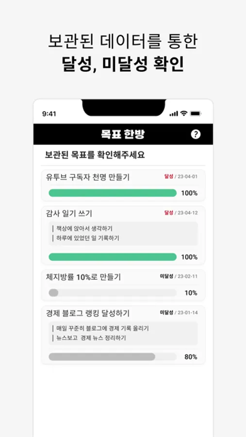 앞으로는 목표 한방을 통해서 목표와 구체적인 계획을 세워 효율적으로 목표를 달성해보세요!