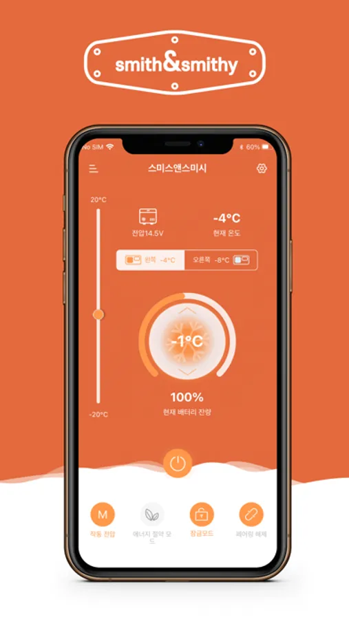 A smith&smithy refrigerator paired with the app allows users to control all functions of the refrigerator from their phone, including powering on/off, setting the temperature, checking the current temperature, and changing modes.