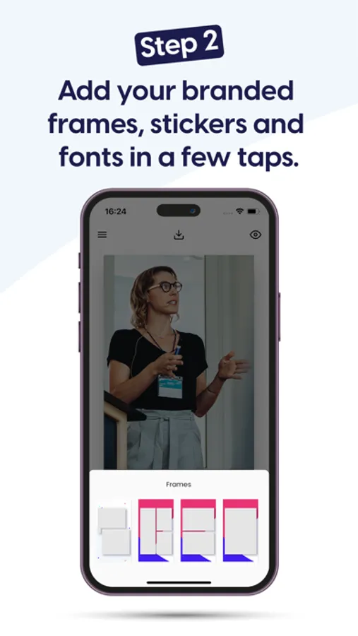Use our mobile app to add branded frames, stickers and fonts to your social media stories and posts straight from your phone. Great for covering live events and posting on the go. Perfect for increasing recognizability and brand awareness.