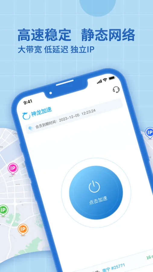 神龙加速是一款国内切换静态IP地址软件,线路节点覆盖全国200+城市,可一键切换国内IP地址。