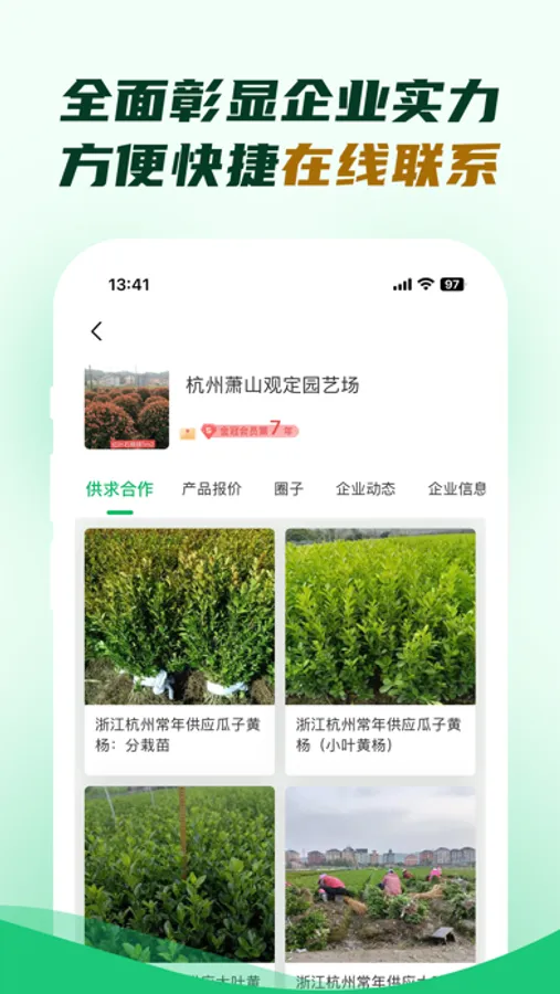 中国园林网凭借新媒体及海量客户优势,广泛与各地政府、行业组织开展合作,积极开拓网上网下资源整合,强化资源优势,先后组织策划全国苗乡万里行、各地采购大会、专业行业论坛、行业培训等行业大型活动,为广大从业人员提供多渠道、多维度的交流及提升机会。