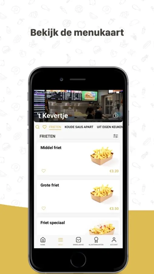 Een heerlijk pak friet, lekkere burger of smakelijk broodje zonder lange wachtrij? Download de App van ‘t Kevertje en bestel online.