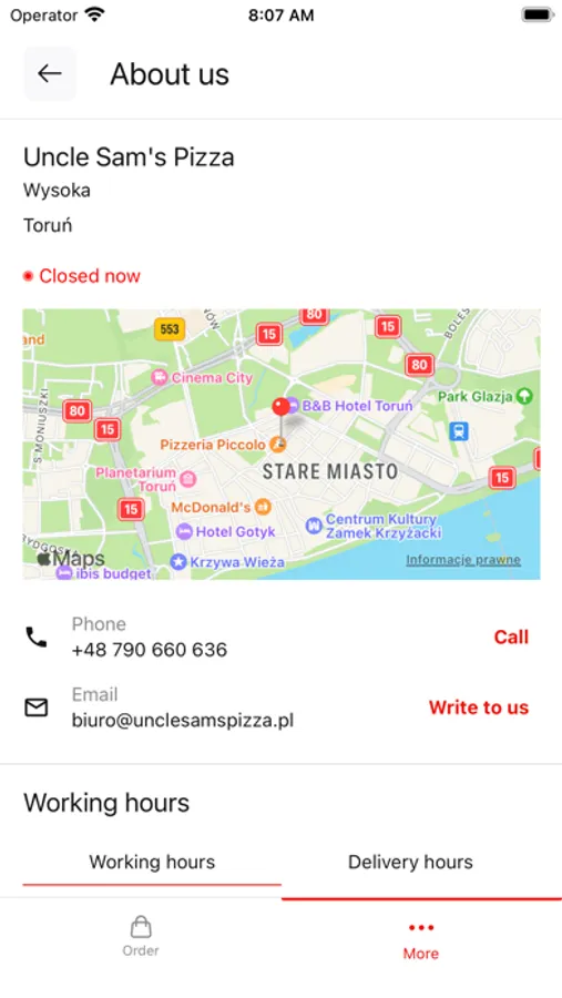 Oprócz zamawiania online aplikacja pozwala sprawdzić: