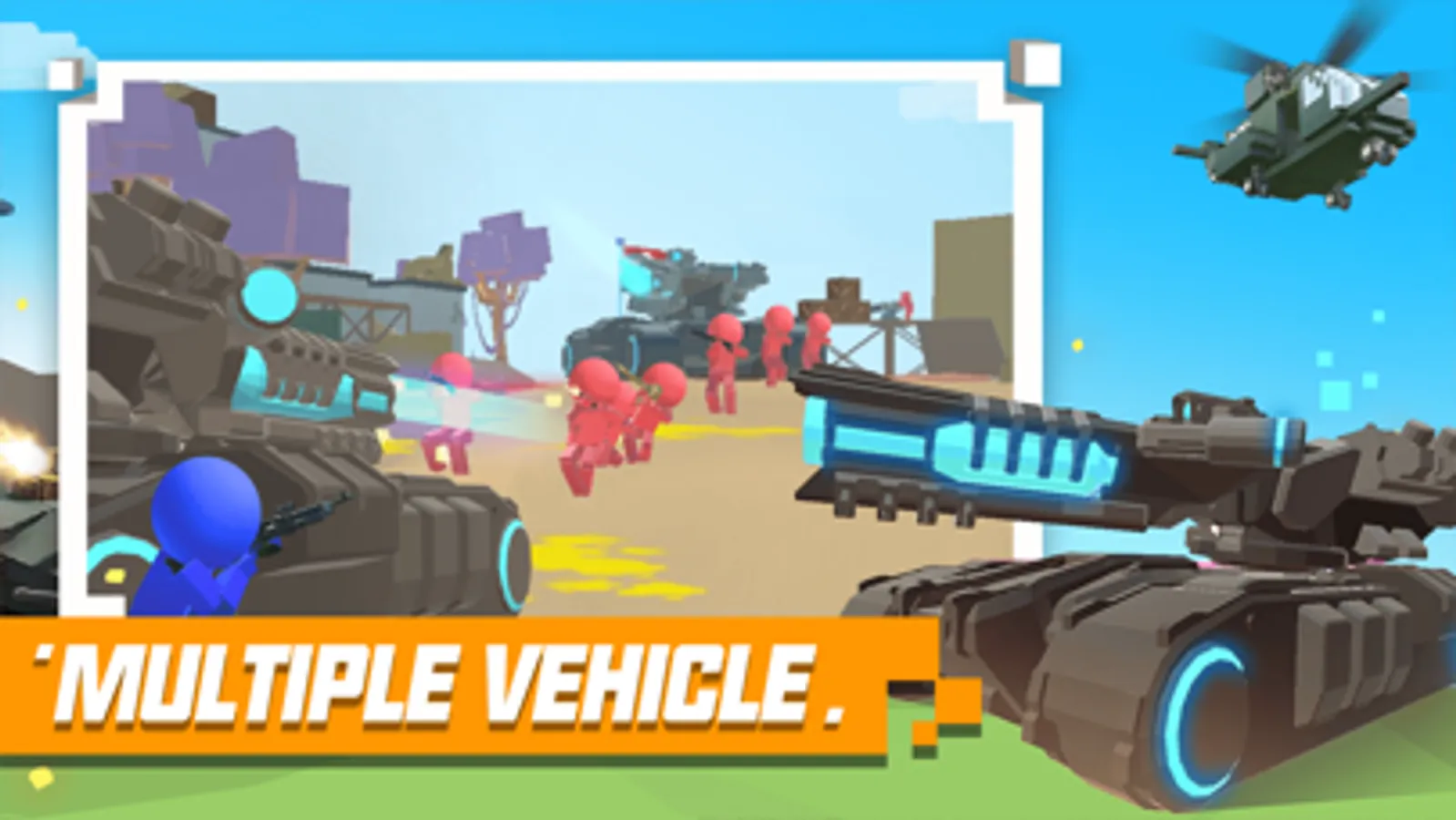 Accompanying the battle, you can fly various planes, cars, tank vehicles, and shuttle on the battlefield. Use bunkers or sniper points to eliminate enemies from afar; Utilize high explosive RPG ultra long-range attacks on enemy command centers;