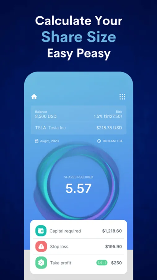 ⁃ Optimal Position Calculation: Easily determine your ideal position size for every trade.