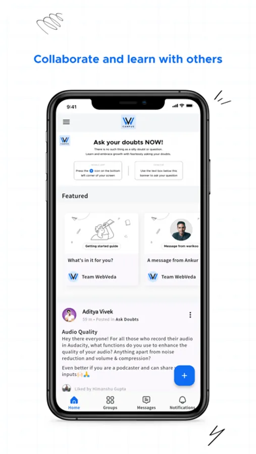 WebVeda campus is an a place where all students of WebVeda (i.e., Ankur Warikoo courses) hang out together, and share their progress, their success, their milestones, where they are stuck, where they need help.