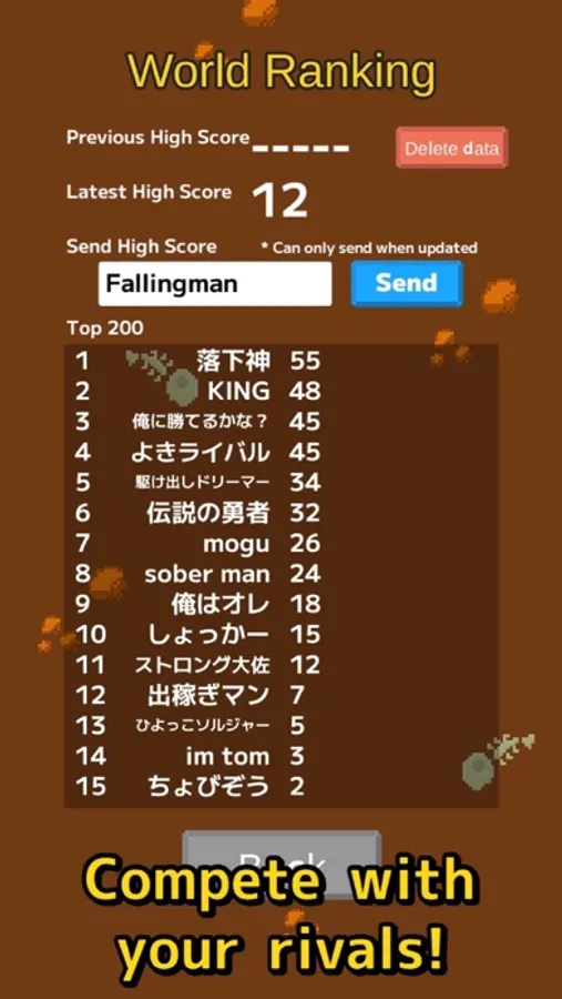 When you update your best score, you can send it from the ranking screen and compete with rivals worldwide.
