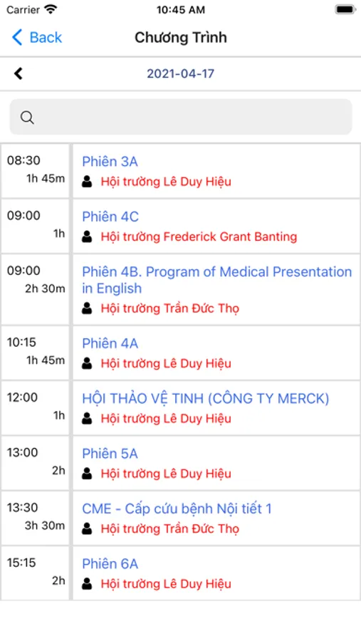 - Lịch trình hội nghị: Xem và theo dõi buổi diễn thuyết, hoạt động và sự kiện quan trọng trong lịch trình chi tiết.