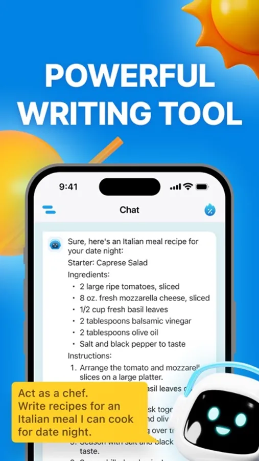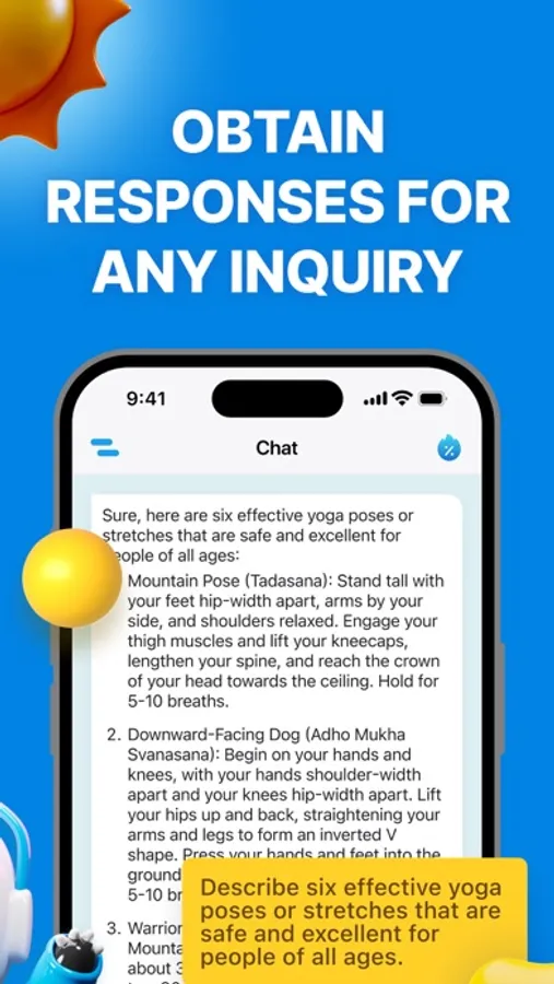 In this application you will find the answer to any question: solve a math problem, write a poem or a song, write an essay, plan a vacation, make a personalized meal plan and solve many other problems.