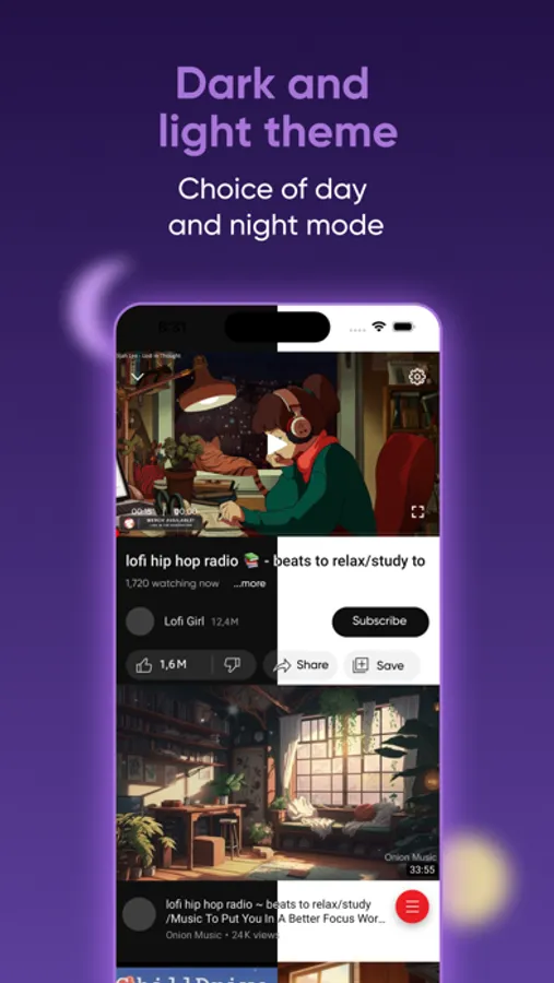 The theme can change automatically depending on the system settings of your device. You can also choose a color scheme that is comfortable for you;