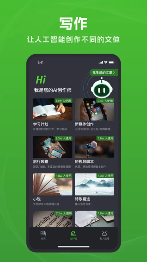 内容创作:帮你写小说、写策划案、写剧本、歌曲填词,你能想到的,[点灵]都能做到;