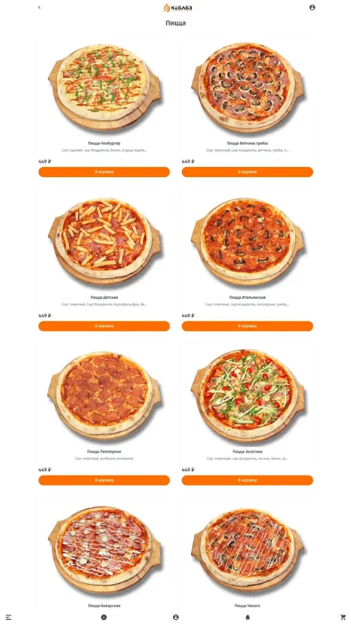 Приложение для заказа еды. Доставка шашлыка, пиццы, салатов, закусок.