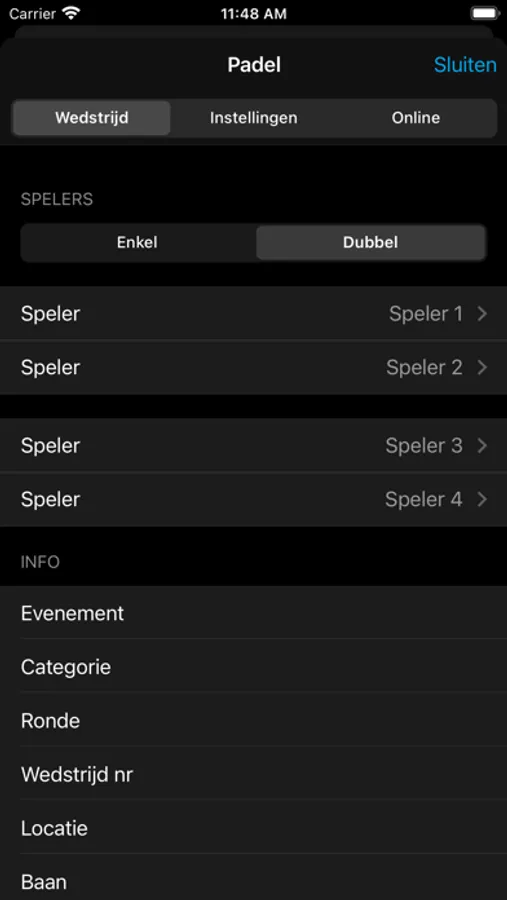 App voor bijhouden van padel scores. Geschikt voor gebruik van internationale wedstrijden.