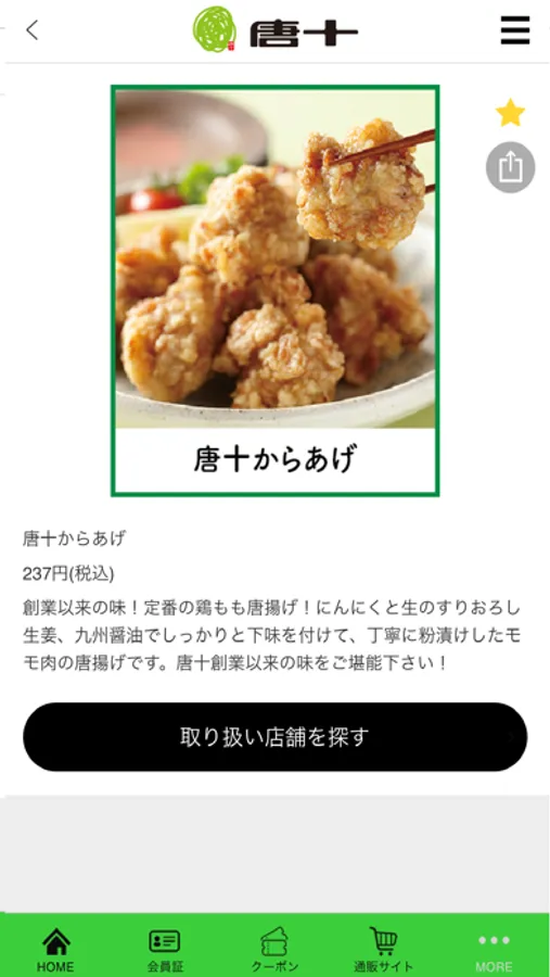 「唐十」アプリは、対象店舗にて会員証としてご利用いただけるだけでなく、最新のお知らせや、オンラインショップでのお買いものが便利にご利用いただけるアプリです。