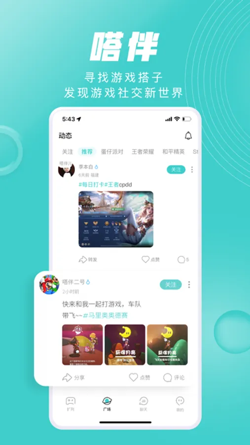 汇聚Z世代、学生、白领、摸鱼打工人、干饭族等广大用户,在这里可以寻找学习搭子、游戏搭子;在这里可以找初高中学习搭子、考研考公考证学习搭子;在这里可以寻找《王者荣耀》《和平精英》《光•遇》《蛋仔派对》《金铲铲之战》《第五人格》《英雄联盟》《暗区突围》《逆水寒》等热门手游以及Steam、主机游戏玩家,一起组队开黑、上排位、CPDD,甚至邂逅游戏大神,组队游戏上分。