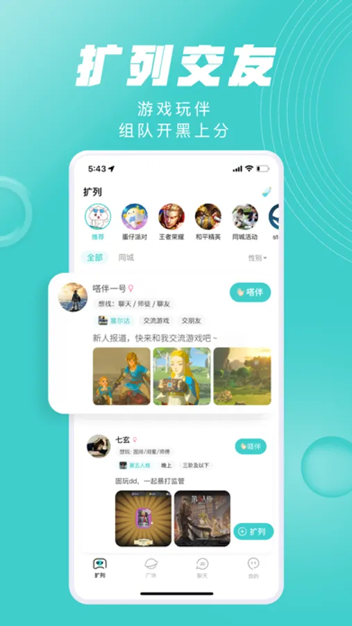 找游戏玩伴,遇到同龄人,聊游戏聊生活聊学习,延续游戏空间,发现兴趣社交新世界!