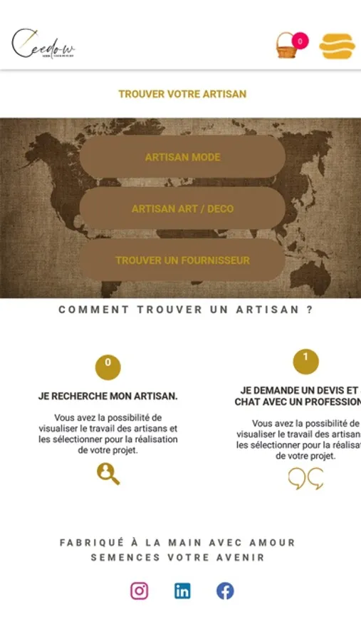Ceedow est la plateforme idéale pour travailler à distance avec des artisans de la mode et de la décoration. Il vous suffit d'envoyer une photo de votre modèle d'inspiration et les artisans concevront des pièces uniques selon vos instructions. Nous sommes votre partenaire de confiance pour assurer la livraison. Avec Ceedow, donnez vie à vos idées de mode et de décoration en un clin d'œil !