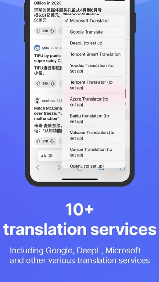 - Supports 10+ translation services - In immersive translation, you can choose from more than 10 translation services, such as Deepl, Microsoft Translator, Google Translate, Tencent Translate, etc., and this list is constantly growing.