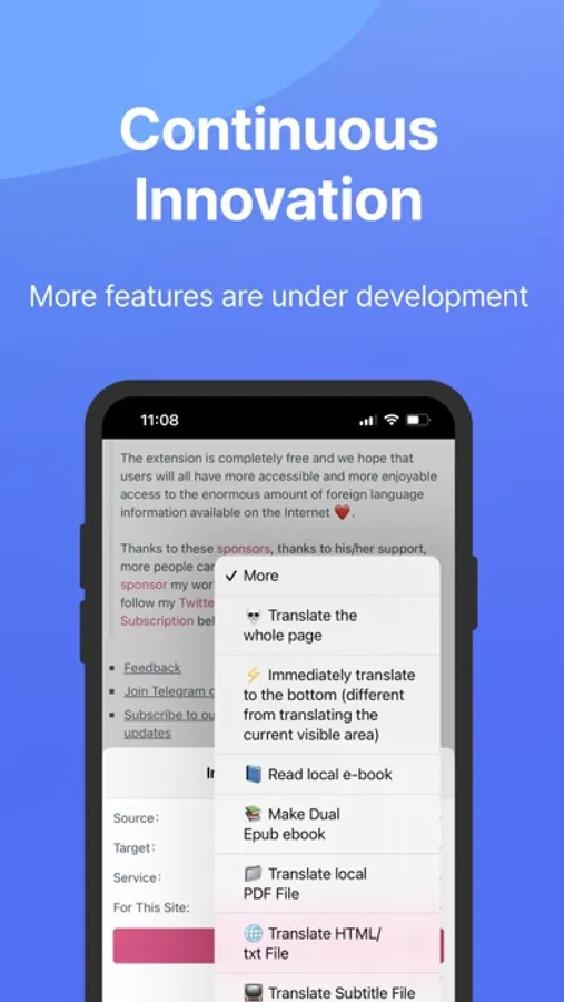 - Full platform support - Apart from all major desktop browsers, mobile devices can also enjoy the same immersive translation experience. Easily achieve bilingual browsing on social media like Twitter, Reddit on mobile browsers.