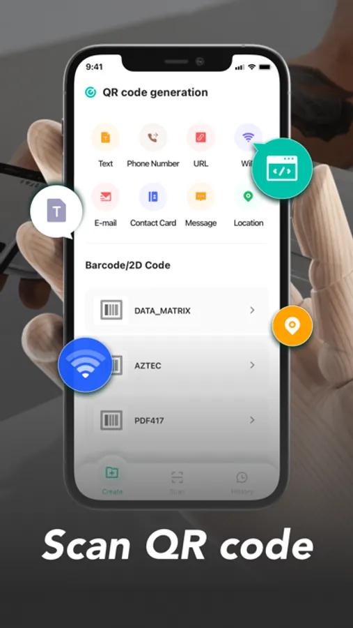 Code formats supported include:QR code, EAN 13, EAN 8, UPC-A, UPC-E, Code 128, Data Matrix, PDF417, Aztec, Interleaved 2 of 5, Code 39, Code 93, Codabar, DataBar, etc