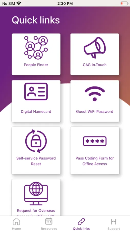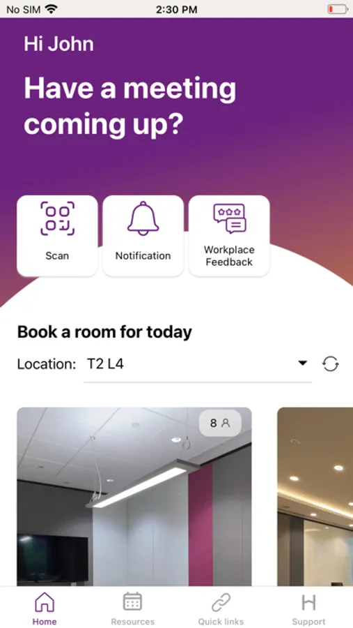 With this integrated system, you will be able to book resources via 5 options: ONE CAG app (recommended), ONE CAG web portal, Outlook, Teams, and room panel.