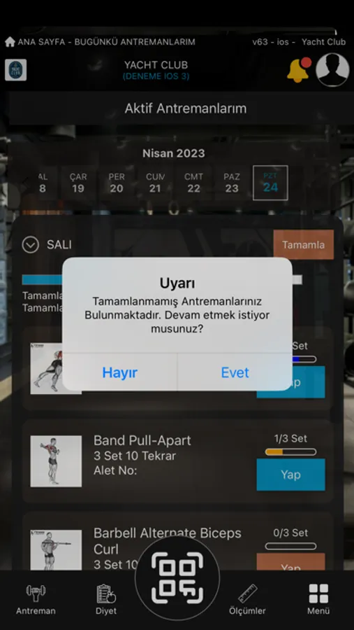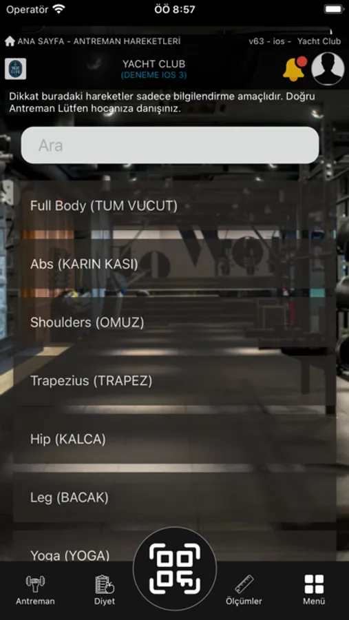 Bildirimler: Spor merkeziniz tarafından sağlanan tüm bildirimleri program aracılığıyla takip edebilirsiniz.