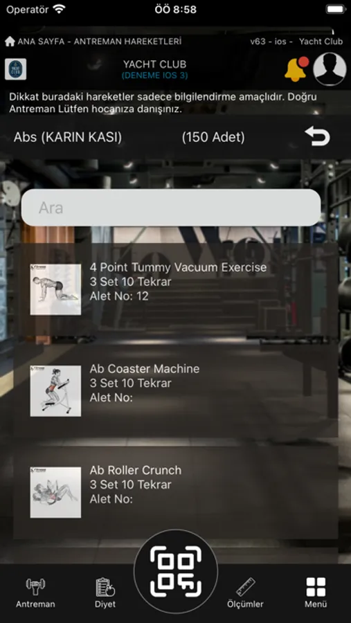 Antrenmanlar: Bu bölümde, spor kulübünde yapacağınız 1500'den fazla egzersizi görsel olarak inceleyebilir, özel antrenman programınızı ve günlük bölgesel gelişiminizi takip edebilirsiniz.