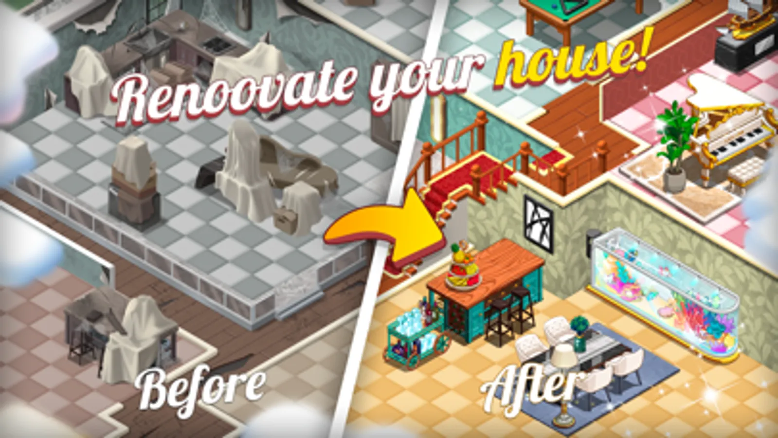 Easy to Start - Just swipe the screen to merge any objects! Use them to build the trendiest villa on a super-large map!