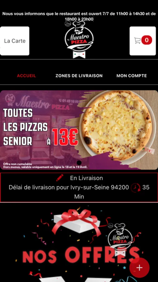 L'application Pizza Maestro Alfortville vous permet de commander en ligne ou par téléphone via votre application. Vous pouvez consulter notre carte et choisir vos produits.