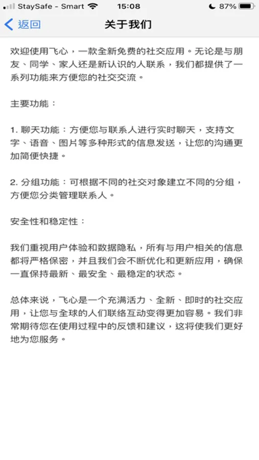 飞心关心您的隐私并提供端到端加密以确保您的对话安全。 您可以放心,您的谈话是安全和私密的。