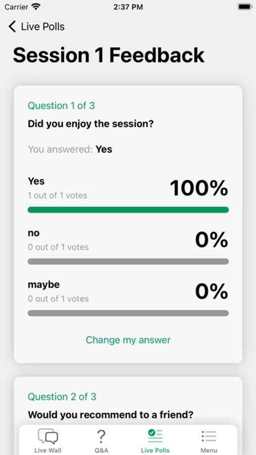 The BNP Paribas Group Events app is a feature rich companion tool for attendees utilising Eventogy's registration platform. The app offers a host of interactive features, from Live Polls to Surveys, interactive messaging tools to personalised scheduling.