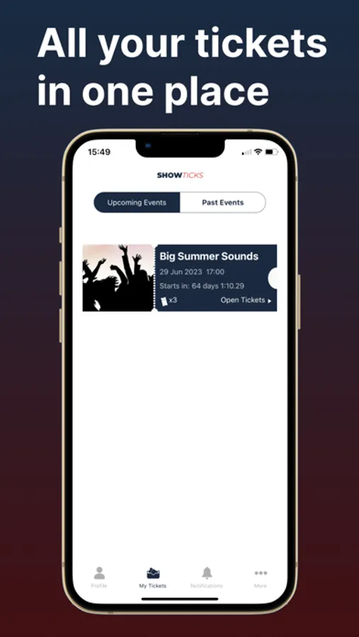 Download the ShowTicks app for a unique, interactive, ticketing delivery experience that goes beyond the entry to the event. Interactive, safe, digital tickets in an instant with the ShowTicks app.