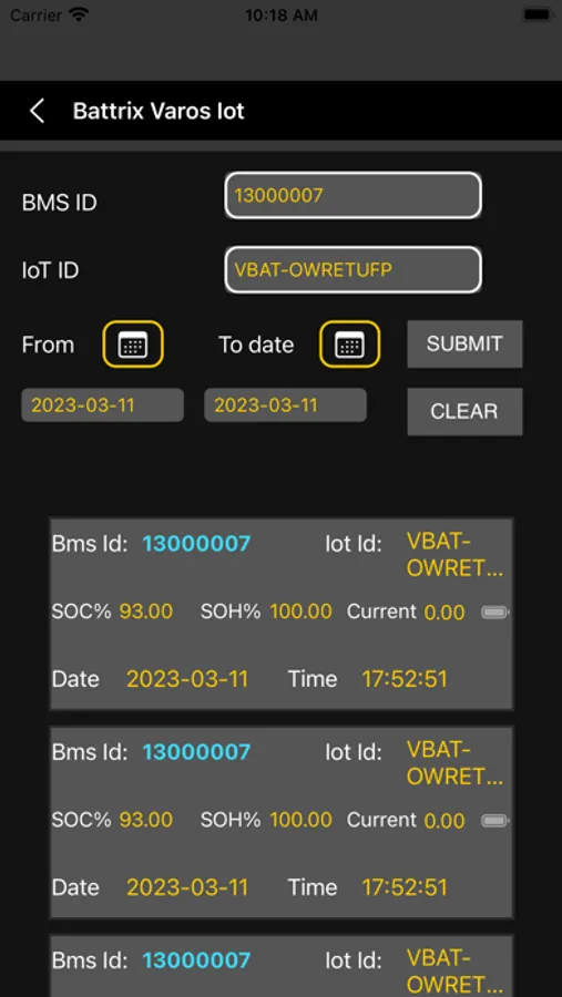 Battrix Varos IoT app Screenshots