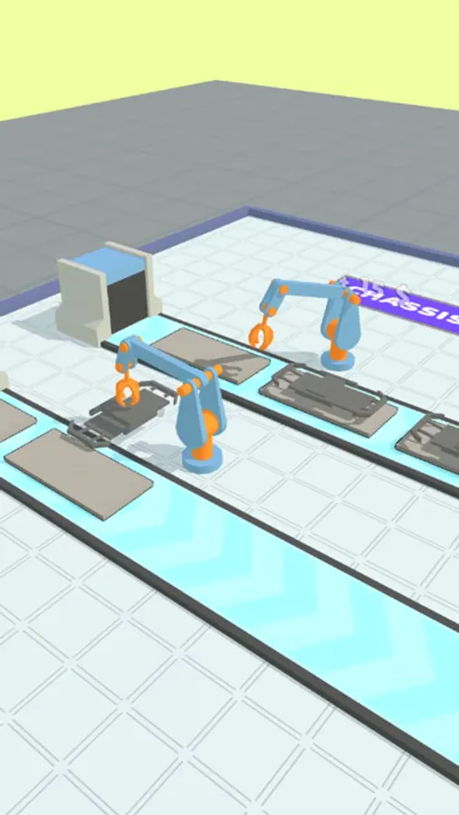 Unlock various machines and start creating your own cars on your very own car factory!
