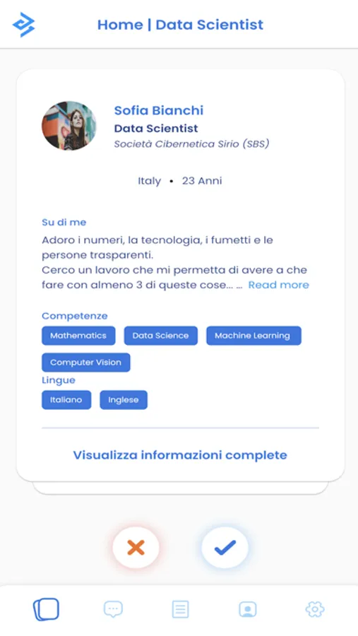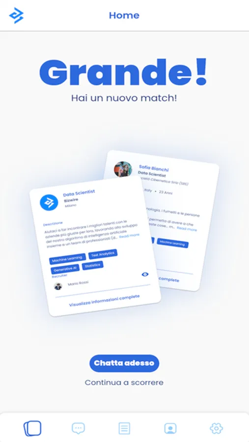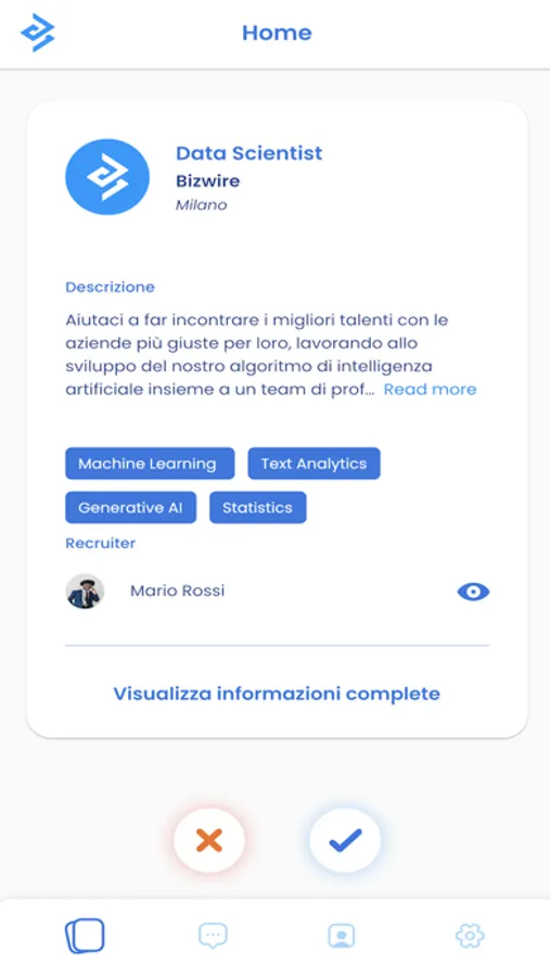Fai swipe sulle opportunità più interessanti tra quelle selezionate per te dall’Intelligenza Artificiale di Bizwire.