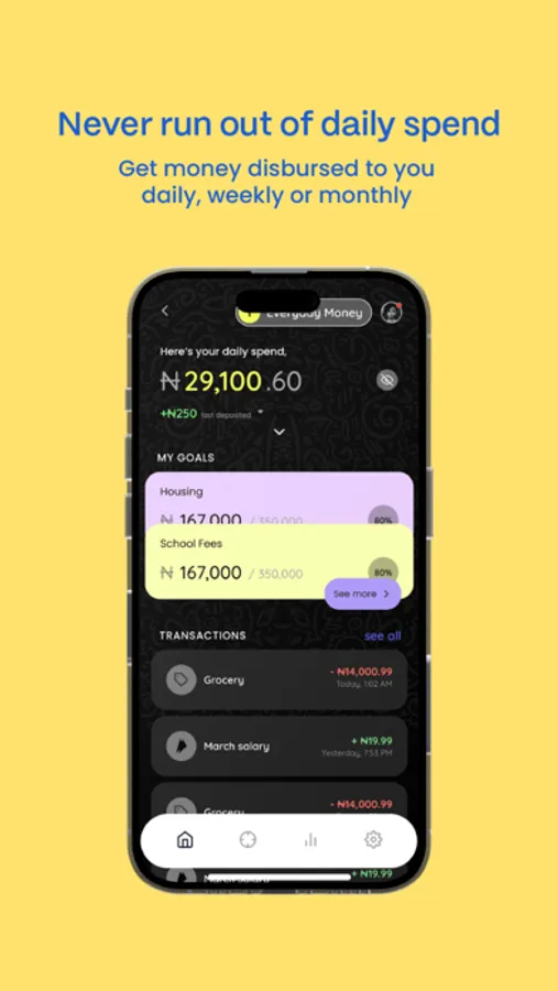 Introducing EverydayMoney, the ultimate budgeting and personal finance app designed to help you stay committed to your financial goals. Effortlessly automate your daily spending with our daily cash disbursement feature, reducing financial stress and anxiety. Manage your daily, weekly, or monthly expenses like transport fares, food allowances, and data purchases with ease.