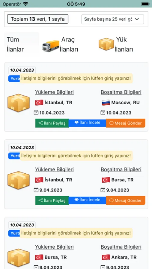 Yük taşımak veya yük taşıtmak isteyenlerin en güvenilir adresi burada! İlan oluşturup kendinizi duyurun. Platformumuz aracılığıyla, işlerinizi hızlandırarak verimliliğinizi arttırın. İlanları filtreleyerek, istediğiniz özelliklere sahip bir yük veya araç bulabilirsiniz. Hemen kaydolun ve işinizi hızlandırmak için ilan oluşturun veya araçlar arayın! En güvenilir yük taşıma platformu için tek adres burası.