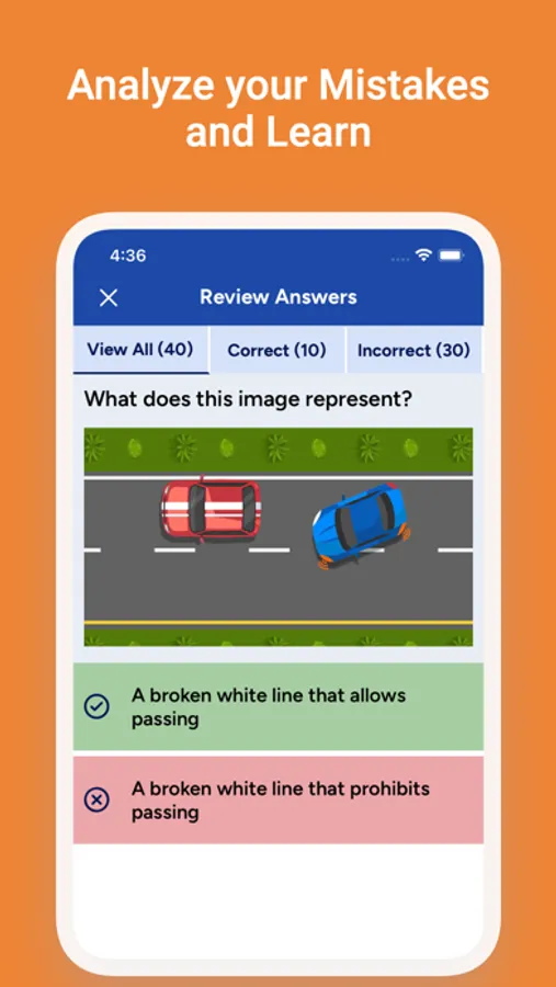 You will get the test result based on the official criteria to pass the Driver’s License Test. You will also be able to find out what questions you've done wrong after taking the test.