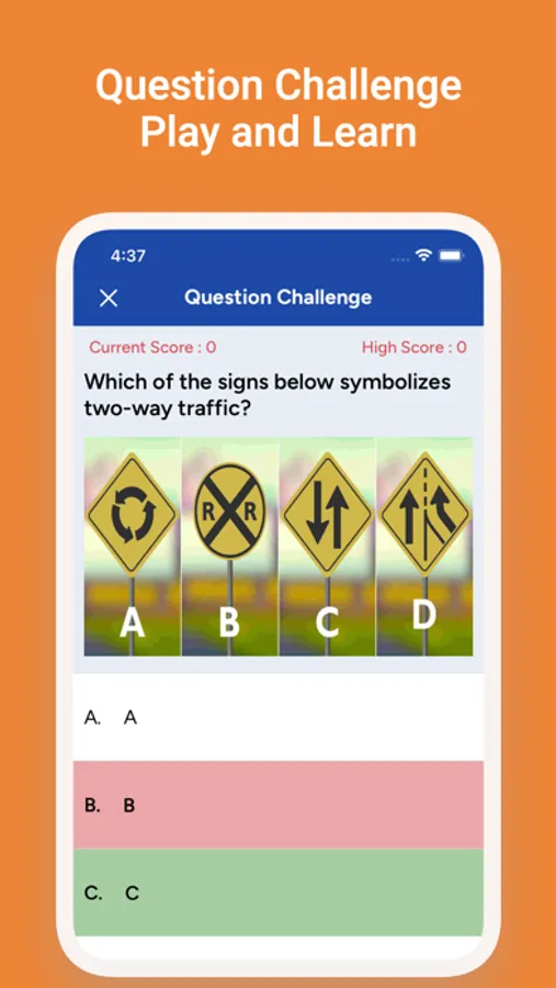 This is a unique feature of our application. It allows you learn while playing a challenge game. Your score will go up by one point each time you correctly answer a question up until the point where you get it wrong. It keeps record of your high score.