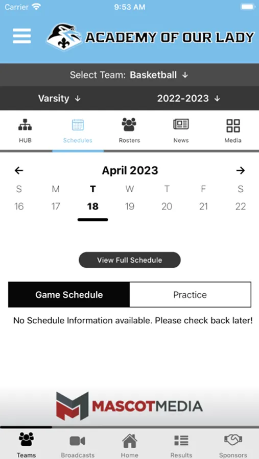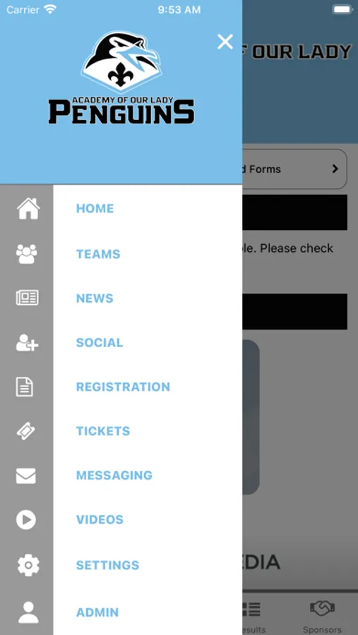 -Supporters: Special Thanks to local boosters and supporters of Academy of Our Lady Athletics with a directory including website and in-app calling.