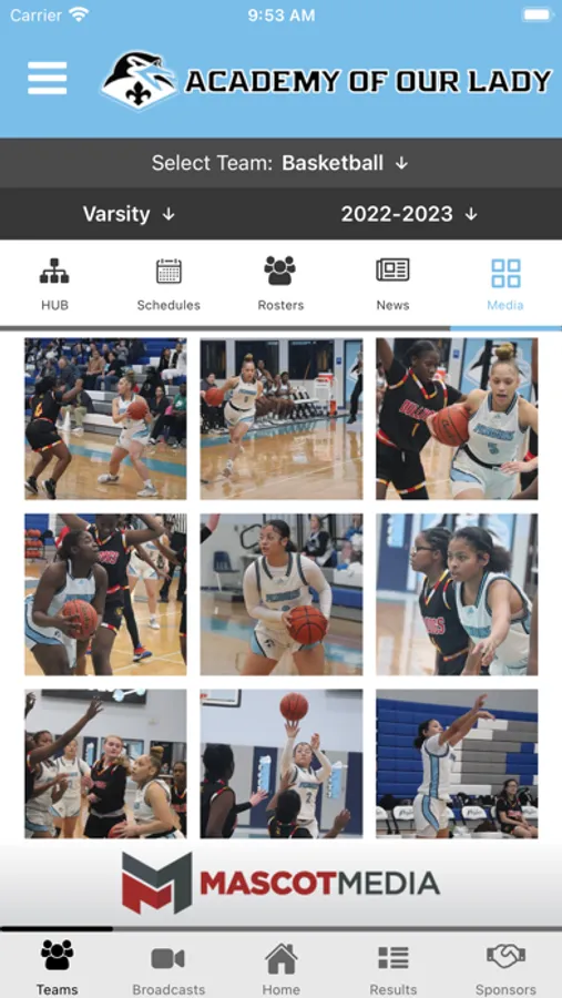 Content is managed by the Academy of Our Lady Athletics Department with help of high school students gaining valuable access to emerging and mobile technologies.