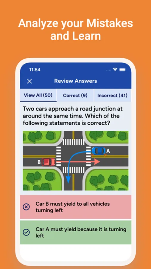 You will get the test result based on the official criteria to pass the Driver’s License Test. You will also be able to find out what questions you've done wrong after taking the test.