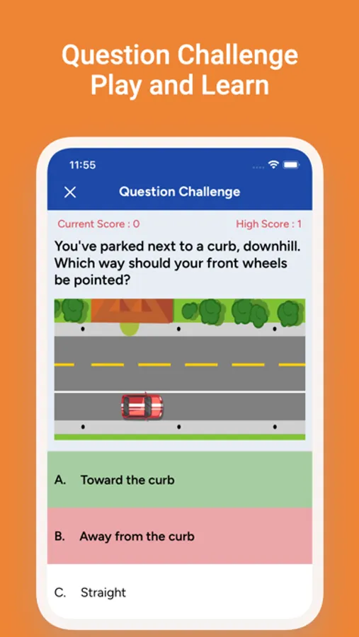 This is a unique feature of our application. It allows you learn while playing a challenge game. Your score will go up by one point each time you correctly answer a question up until the point where you get it wrong. It keeps record of your high score.