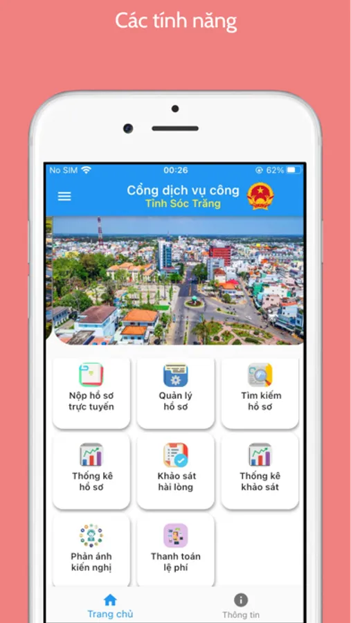 Ứng dụng Dịch vụ công tỉnh Sóc Trăng hỗ trợ người dân, doanh nghiệp, tổ chức có thể nộp các hồ sơ dịch vụ công mức độ 3, 4 trực tuyến. Người dùng có thể tra cứu, quản lý các hồ sơ đã nộp, đã được xử lý, chỉnh sửa, bổ sung hồ sơ khi có yêu cầu, nhận kết quả xử lý. Bên cạnh đó ứng dụng còn hỗ trợ người dùng gửi các ý kiến khảo sát về thái độ phục vụ của cán bộ tiếp nhận hồ sơ, về quá trình xử lý hồ sơ.