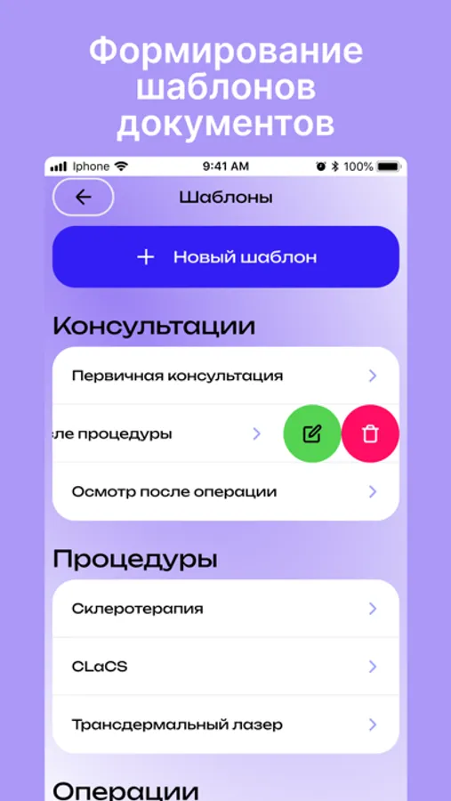 Вносите новых пациентов, создавайте персонализированные шаблоны консультаций, процедур и операций, добавляйте фотографии прямо из приложения, отправляйте документы на печать.
