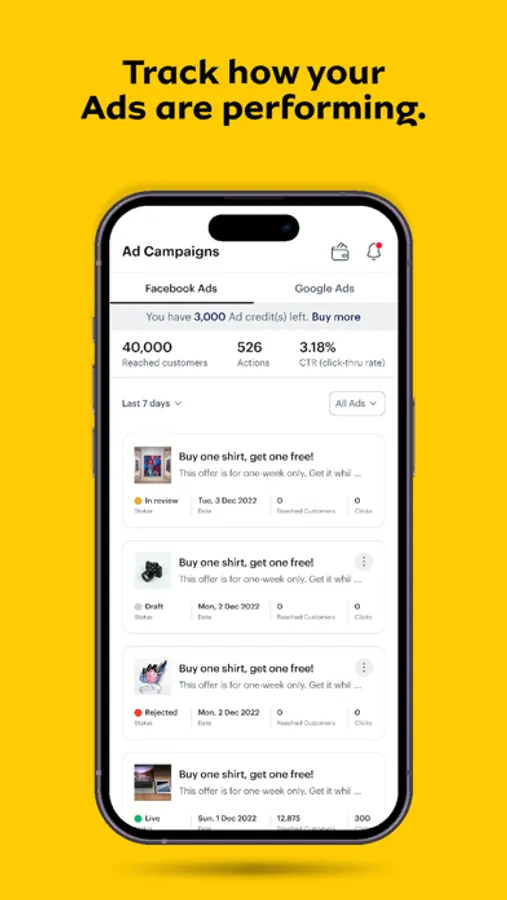 - FIND customers : We’ve made it easy for you to advertise on Facebook and Instagram. Take our 3 step journey to create an advertisement to reach over 1000 customers today!